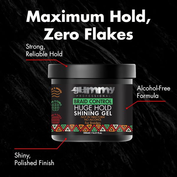 Gummy Professional Braid Control Huge Hold Gel is a specially designed gel for braiding and styling, providing ultra-strong hold. It smooths hair, prevents frizz, and ensures long-lasting styles. The formula delivers a natural shine without a sticky feel, making it perfect for professional use.