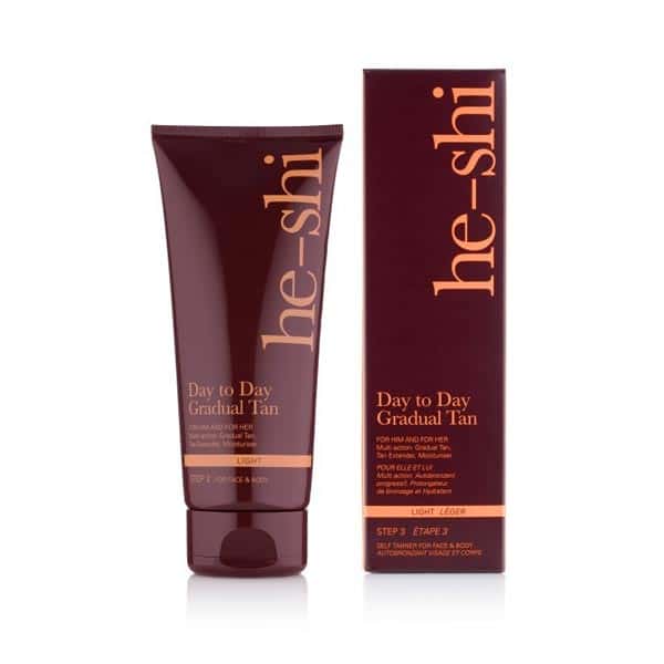 He-Shi Day To Day Gradual Tan is ideal for gradually building a light bronzed complexion for those with fair to medium skin tones.