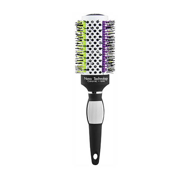 The brush is white, black, green as well as purple and has a contemporary and modern look about it, ensuring it will fit stylishly into any salon. It also has a rubber grip handle for extra comfort.