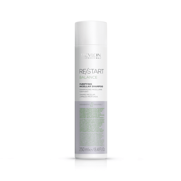 The RE/START Balance Purifying Micellar Shampoo is formulated with KERABIOTIC EQUIFEEL™ technology, which helps to softly cleanse the scalp for shiny, weightless hair.