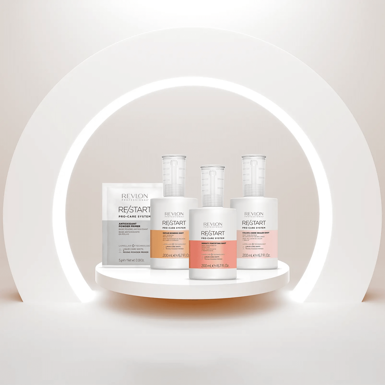 Revlon Re/Start exclusive technology embraces skinification, merging skincare ingredients to balance the scalp’s microbiome. Lamellar technology. When mixed together with our Liquid Care Shots, the ultra-performant formulas act as a GPS to localize hair areas in need of deep treatment and deliver highly concentrated ingredients right where the hair needs them.