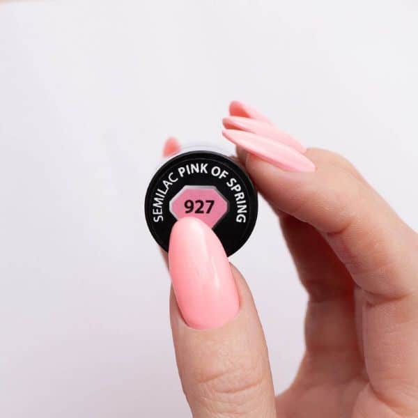 Semilac Gel Polish Pink of Spring 927 is an energizing shade of pastel pink with a delicate hint of whitened neon peach, which perfectly captures the spirit of warm, sunny days. This color is a real revival of any spring styling – from subtle accents to full, expressive nails.