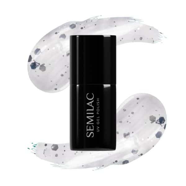 Semilac Gel Polish Silver & White Drops 924 is a transparent jewelry UV Gel Polish with particles of various sizes in subtle shades of white and silver. Thanks to this, it is an ideal addition to both decorations and self-manicuring.