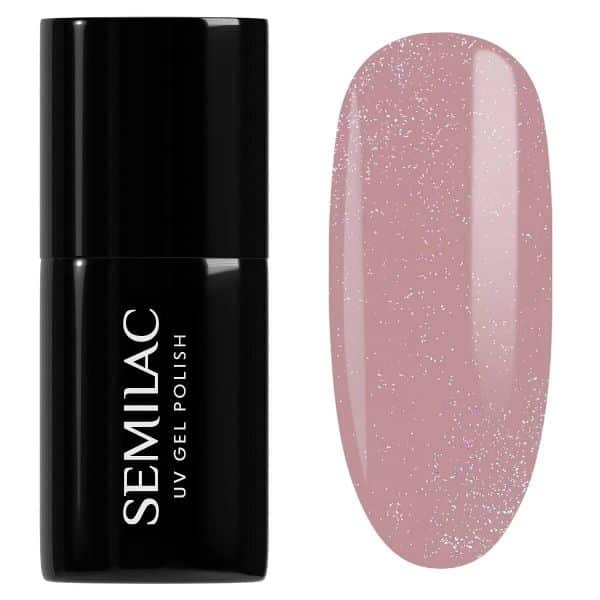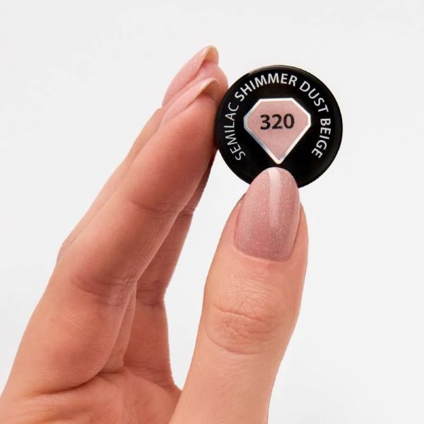 UV Hybrid Semilac Shimmer Dust Beige 320 is a professional “nude” look with a hidden sparkle, featuring a warm beige base infused with very fine silver-gold particles, from the Shimmer Dust Collection