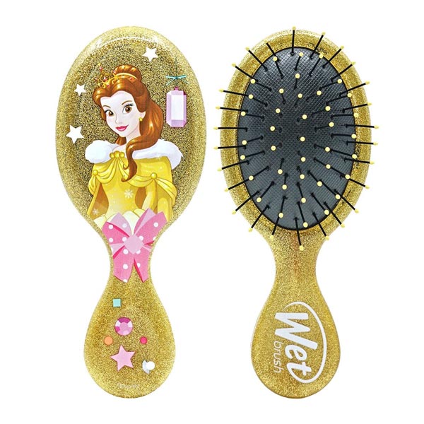 Wet Brush Mini Detangler Brush Princess Belle is a mini sized glittery brush with Disney Princess design, brilliant for painlessly and efficiently removing tangles from your hair. Perfect for all hair types and textures, this brush can be used on both wet or dry hair. Equipped with ultra-soft Intelliflex bristles, it gently loosens knots and tangles, gliding effortlessly through the hair, causing 45% less breakage than ordinary brushes, and requiring 56% less effort.