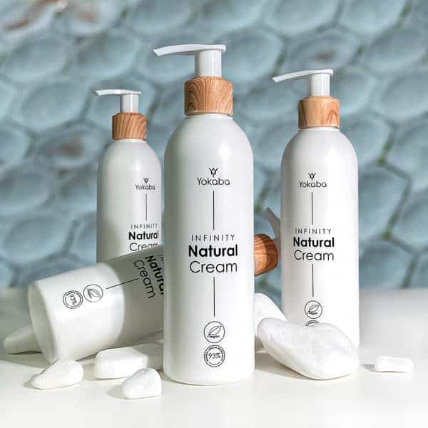 Yokaba Infinity Natural Cream 500ml is a moisturizing and protective cream for hands, feet and body – VEGAN formula, based on 93% ingredients of natural origin with a delicate and subtle aloe scent.