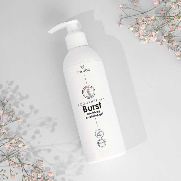 Yokaba Podotherapy Burst Gel is a product for removing keratinized heel skin and calluses. 250 ml of the product is enough for up to 100 treatments. Thanks to its gel consistency, the preparation is very easy to apply. It stays in the place of application and does not flow from the heels. It significantly accelerates the development of the metatarsal skin and is an excellent preparation for a pedicure treatment. It restores the healthy appearance of the feet and makes the skin smooth and silky.